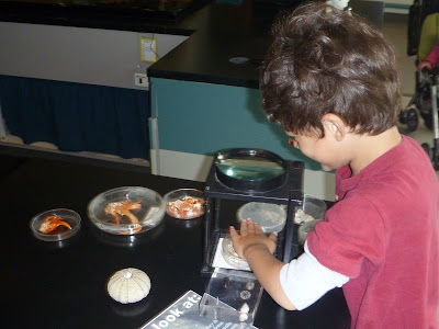 The magnifying glass was a hit. We looed at sea shells and small crabs, but mostly our hands.